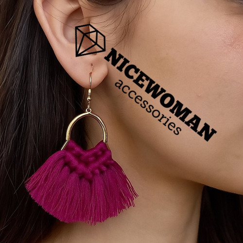 گوشواره زنانه آویز طلایی صورتی بافت مکرومه برند اروپایی ضدحساسیت