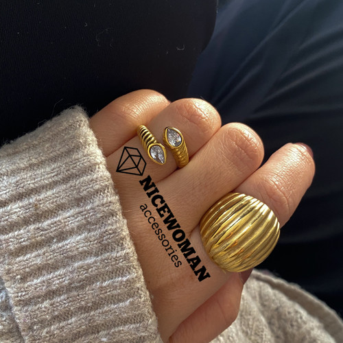 انگشتر زنانه طلایی نگین سفید برند اروپایی Iam ضدحساسیت
