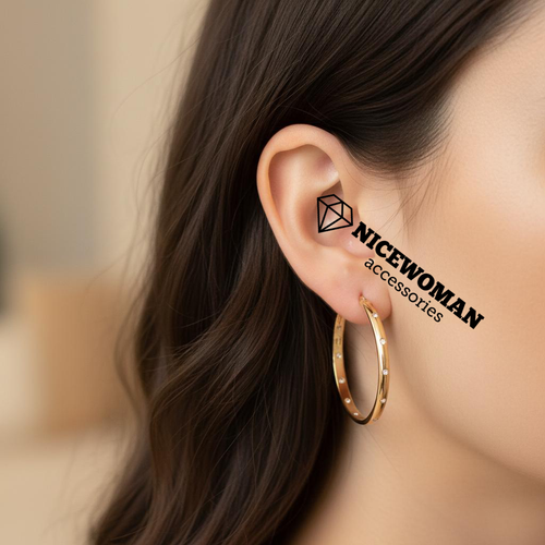 گوشواره زنانه حلقه ای نگین دار طلایی روکش طلا برند اروپایی ضدحساسیت