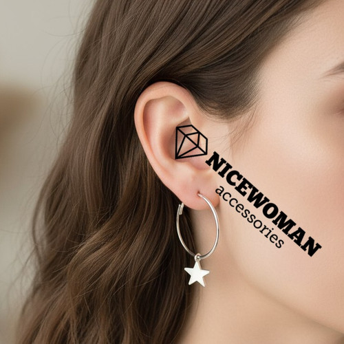 گوشواره زنانه حلقه ای نقره ای آویز ستاره برند اروپابی ضدحساسیت