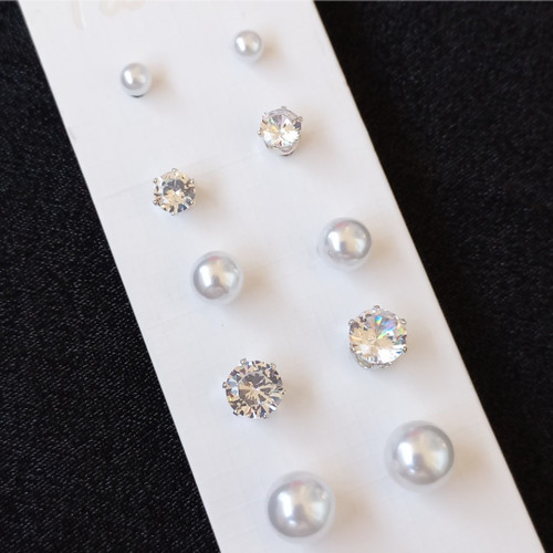 پک گوشواره زنانه میخی مروارید و نگین نقره ای برند اروپایی ضدحساسیت