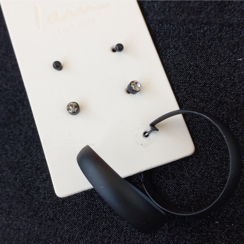 پک گوشواره زنانه میخی و حلقه ای مشکی برند اروپایی Iam ضدحساسیت