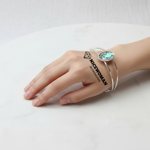 بنگل زنانه نقره ای سنگ هفت رنگ برند اروپایی accessories ضدحساسیت