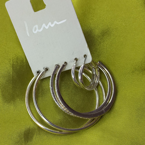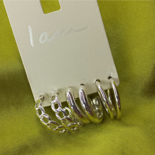 پک گوشواره زنانه حلقه ای نقره ای ساده و طرح دار برند اروپایی Iam ضدحساسیت