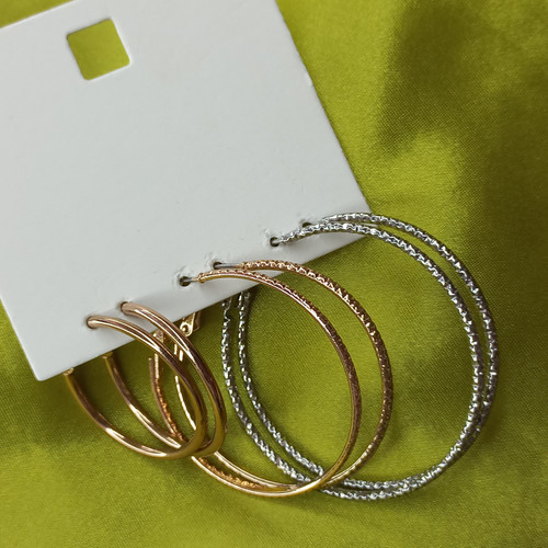 پک گوشواره زنانه حلقه ای نقره ای و طلایی ساده و طرح دار برند اروپایی ضدحساسیت