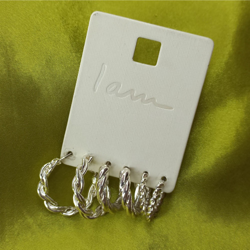 پک گوشواره زنانه حلقه ای نقره ای طرح دار برند اروپایی Iam ضدحساسیت