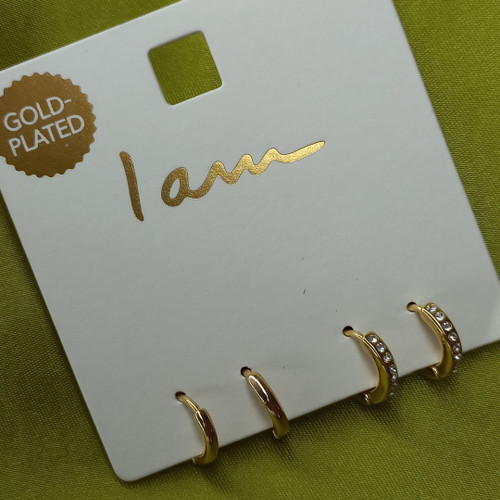 پک گوشواره زنانه حلقه ای طلایی نگین دار و ساده روکش طلا برند اروپایی Iam ضدحساسیت