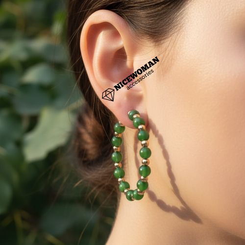 گوشواره زنانه نیم حلقه مهره سبز برند اروپایی accessories ضدحساسیت