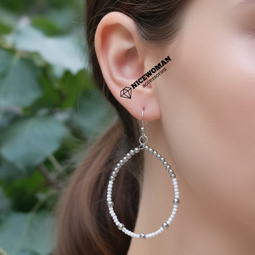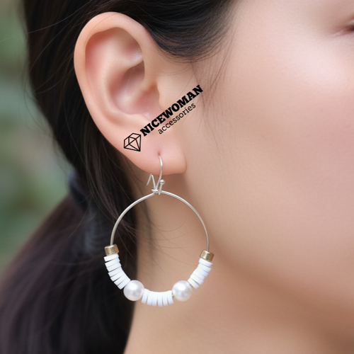 گوشواره زنانه حلقه ای فول نگین سفید برند اروپایی Iam ضدحساسیت
