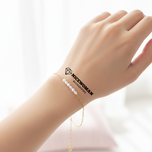 دستبند زنانه طلایی زنجیر و مروارید برند اروپایی Iam ضدحساسیت