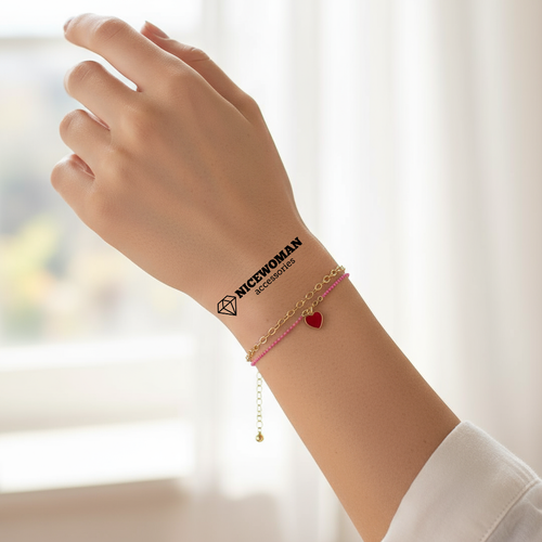 دستبند زنانه طلایی صورتی دو ردیف آویز قلب برند اروپایی ضدحساسیت
