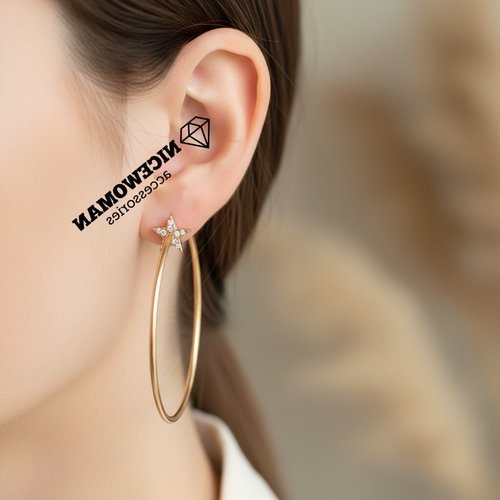 گوشواره زنانه میخی طلایی نیم حلقه ای ستاره نگین دار برند اروپایی ضدحساسیت