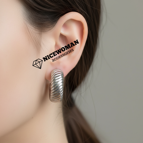 گوشواره زنانه میخی نقره ای نیم حلقه طرح دار برند اروپایی Iam ضدحساسیت