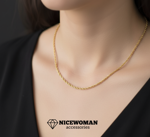 زنجیر زنانه طلایی روکش طلا طنابی برند اروپایی six ضدحساسیت