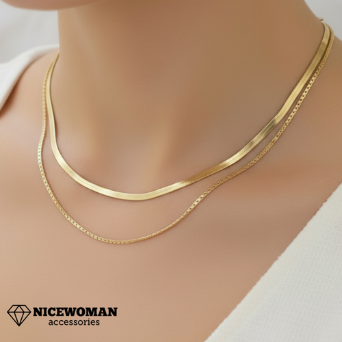 گردنبند زنانه طلایی دوردیف ماری و بافت برند اروپایی Iam ضدحساسیت