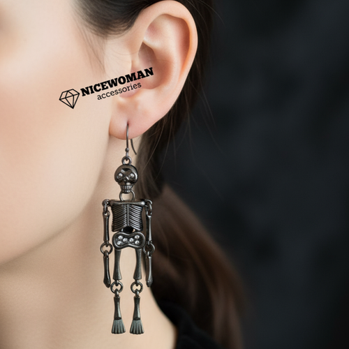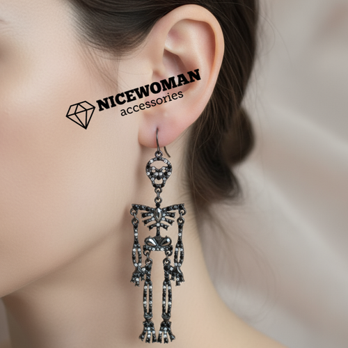 گوشواره زنانه آویز مشکی هالووین طرح اسکلت نگین دار برند اروپایی Iam ضدحساسیت
