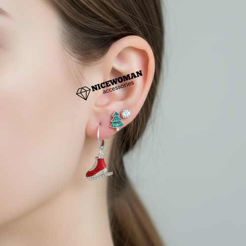 پک گوشواره زنانه نقره ای کریسمس حلقه ای و میخی طرح دار برند اروپایی Iam ضدحساسیت