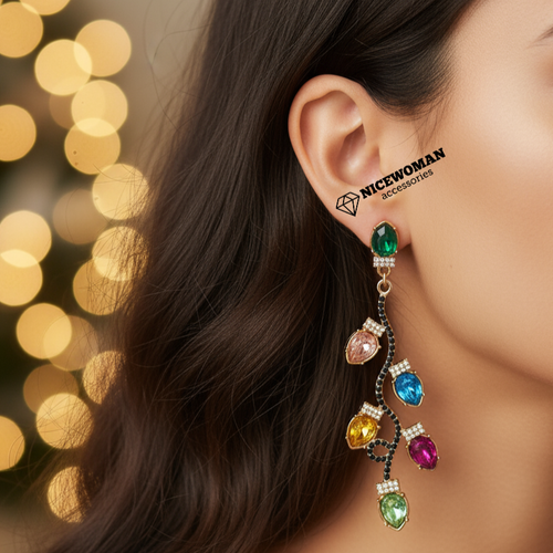 گوشواره زنانه میخی آویز کریسمس نگین رنگی برند اروپایی Iam ضدحساسیت