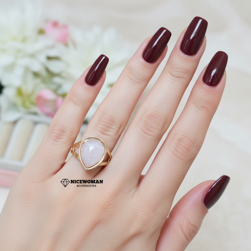 انگشتر زنانه طلایی نگین اشکی صورتی کمرنگ برند اروپایی ضدحساسیت