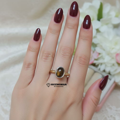 انگشتر زنانه طلایی چشم ببر نگین زیتونی طلایی برند اروپایی ضدحساسیت
