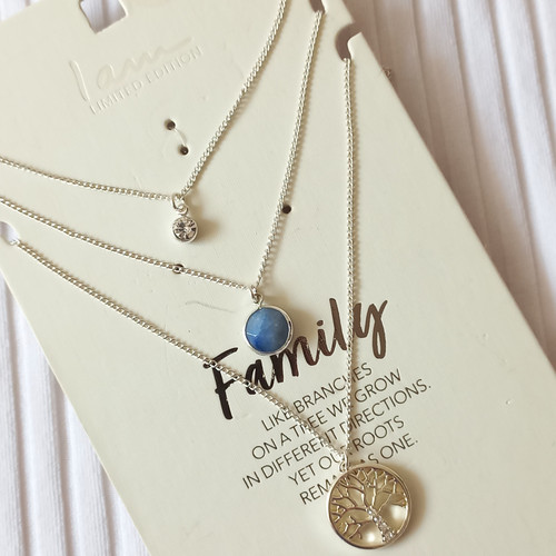 گردنبند زنانه سه ردیف آویز سنگ درخت نگین برند اروپایی Iam ضدحساسیت