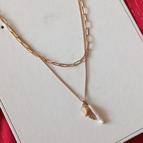 گردنبند زنانه دو ردیف آویز صدف مروارید برند اروپایی TOSH ضدحساسیت