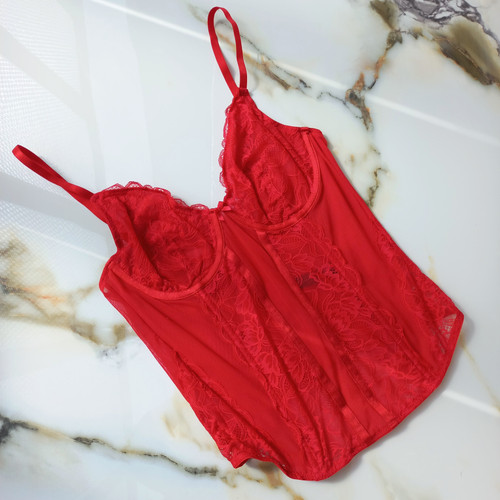 تاپ کورست زنانه کاپ دار فنردار توری قرمز برند اروپایی