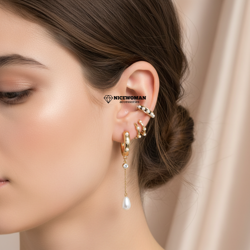 پک گوشواره زنانه آویز میخی سه رنگ برند اروپایی Iam ضدحساسیت