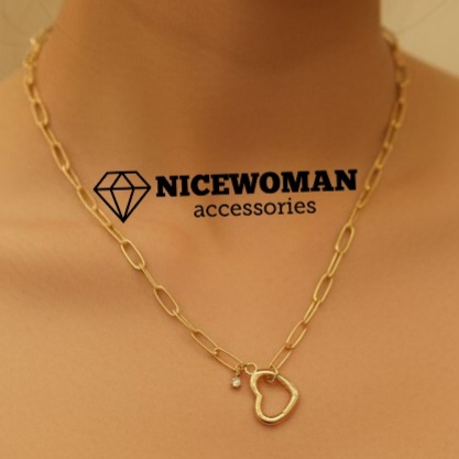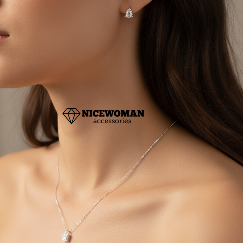 نیمست زنانه زنجیر و پلاک و گوشواره قفل و نگین برند اروپایی ضدحساسیت