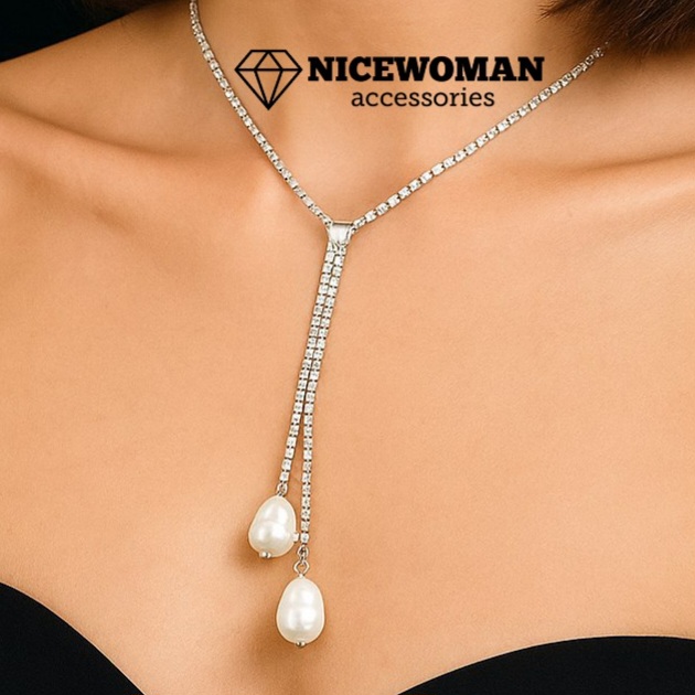 گردنبند زنانه کراواتی نگین سفید آویز مروارید برند اروپایی Iam ضدحساسیت