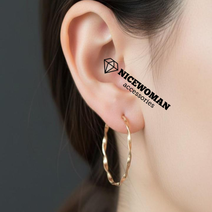 گوشواره زنانه حلقه ای طرح پیچی طلایی برند اروپایی Iam ضدحساسیت