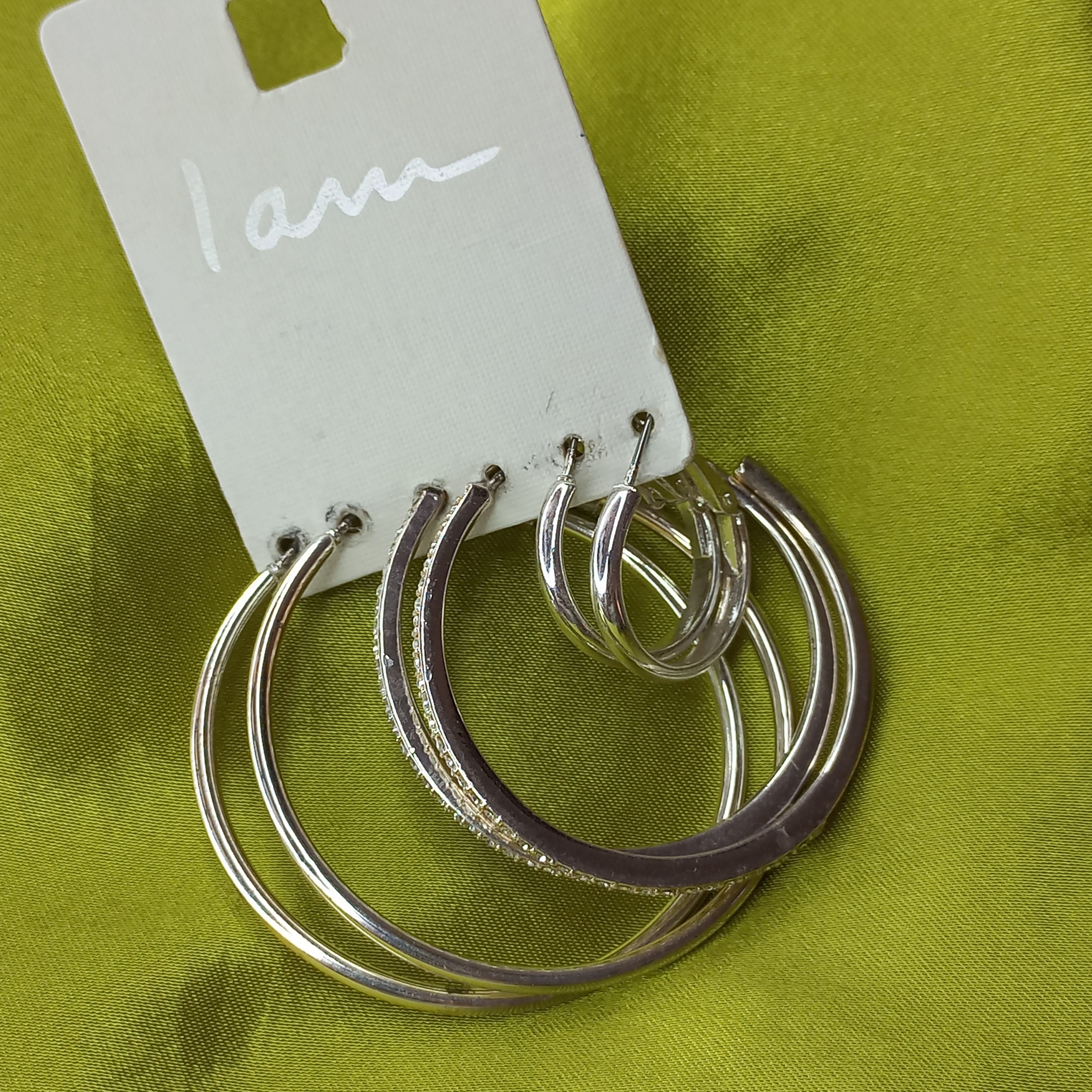 پک گوشواره زنانه حلقه ای ساده و نگین دار نقره ای برند اروپایی Iam ضدحساسیت