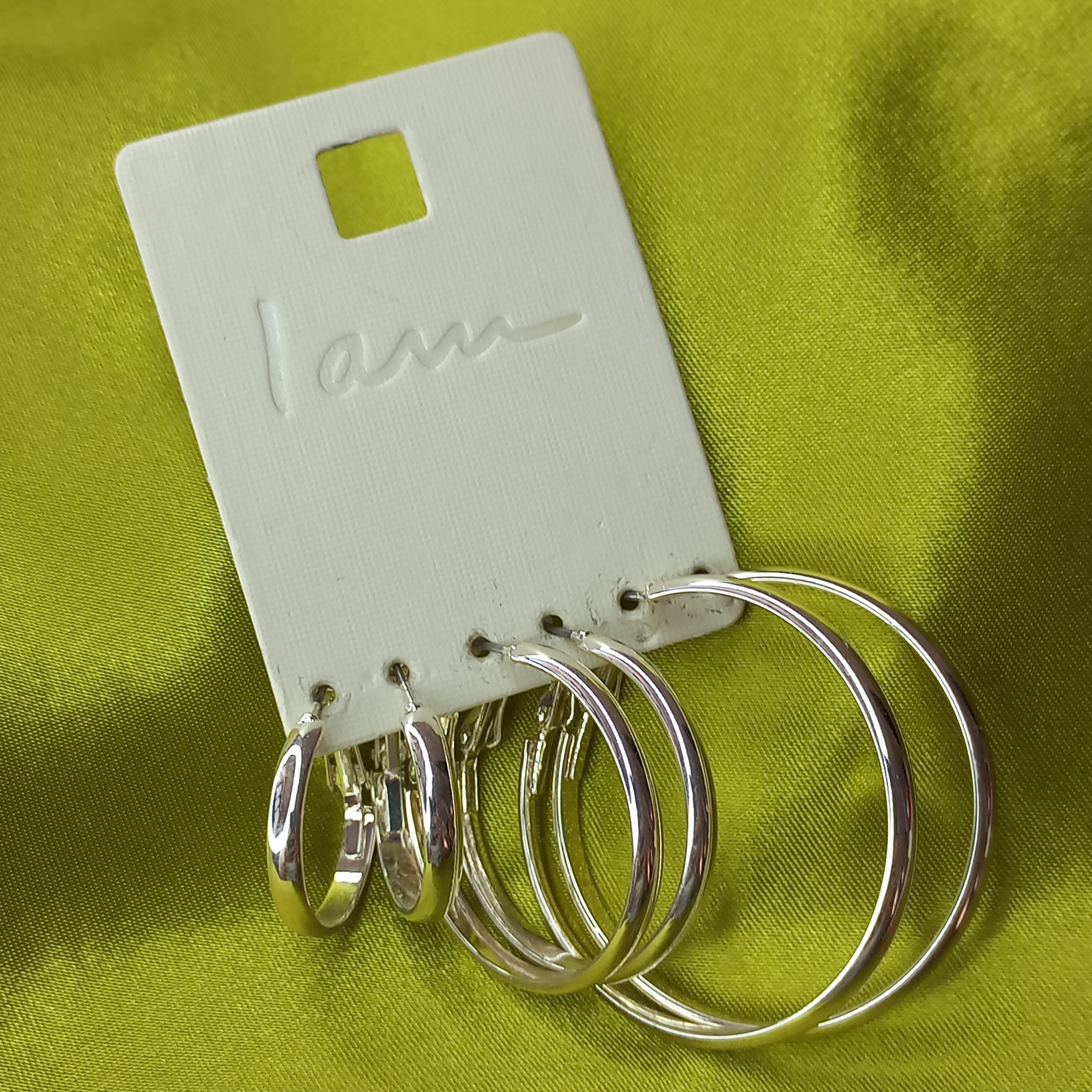 پک گوشواره زنانه حلقه ای نقره ای ساده و طرح دار برند اروپایی Iam ضدحساسیت