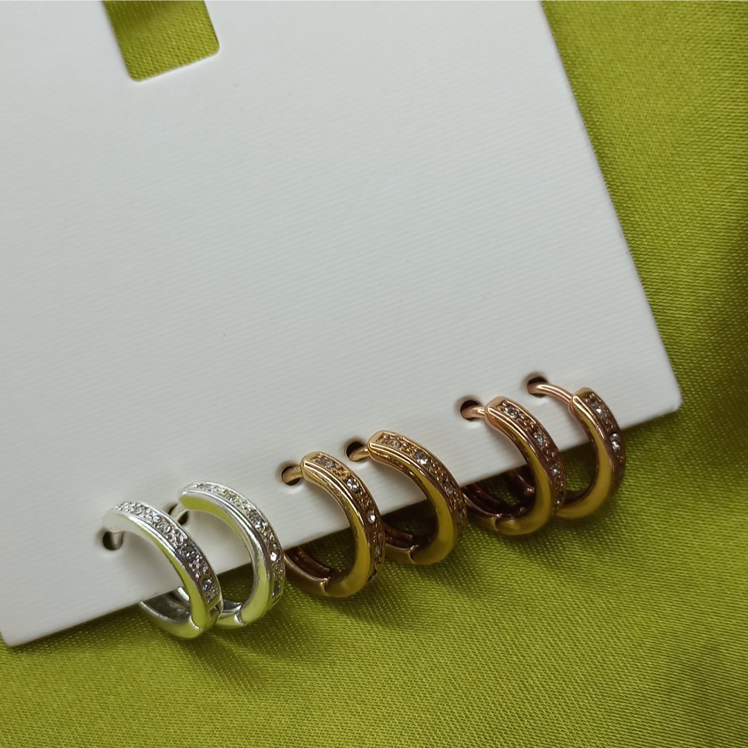 پک گوشواره زنانه حلقه ای نگین دار طلایی نقره ای رزگلد برند اروپایی ضدحساسیت
