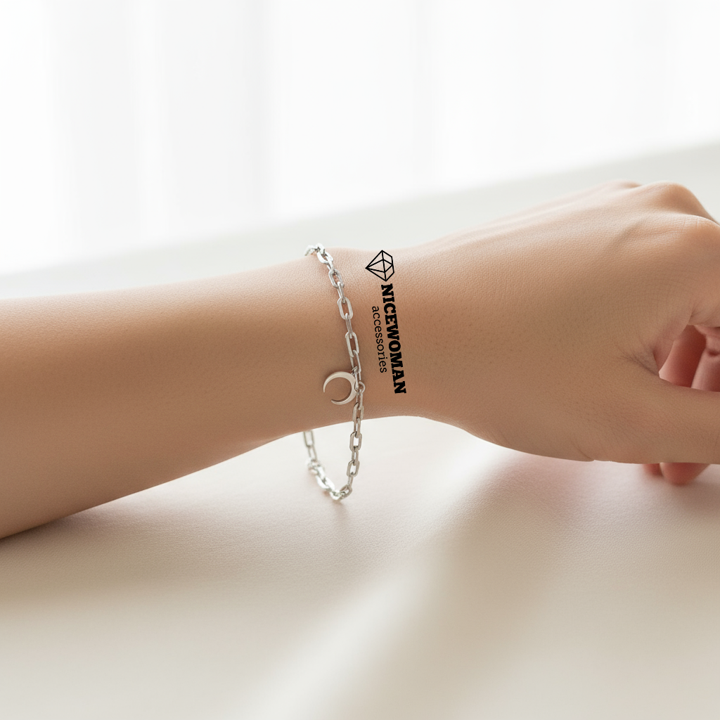 دستبند زنانه نقره ای استیل آویز ماه برند اروپایی accessories ضدحساسیت