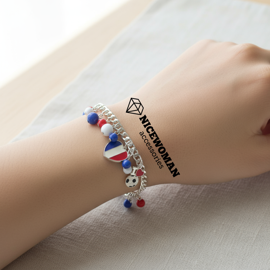 دستبند زنانه نقره ای آویز قرمز آبی سفید برند اروپایی accessories ضدحساسیت