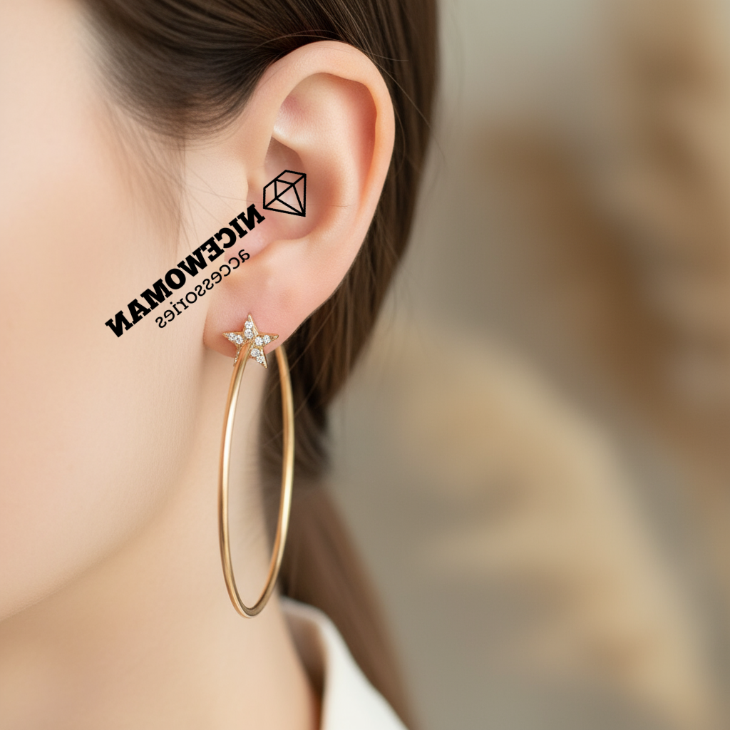 گوشواره زنانه حلقه ای نقره ای آویز ستاره برند اروپابی ضدحساسیت