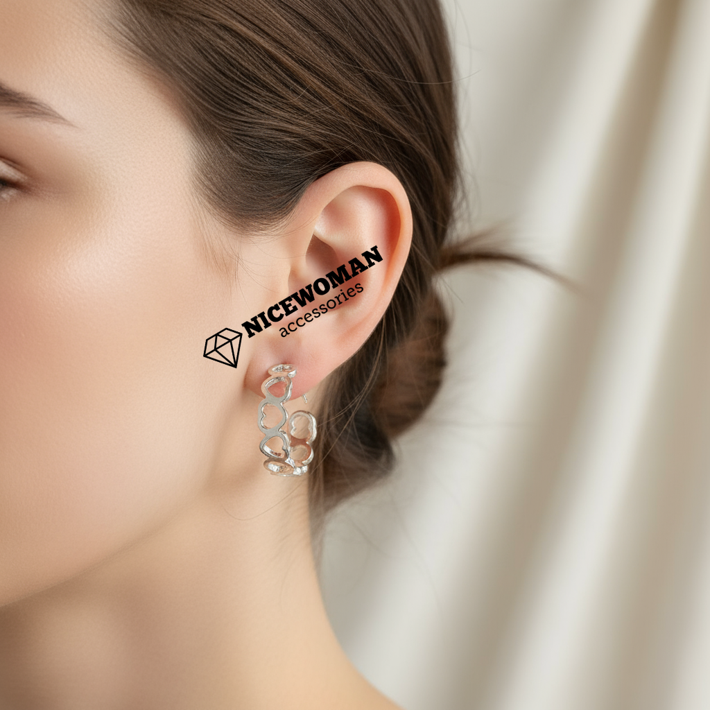 گوشواره زنانه میخی نقره ای نیم حلقه طرح قلب برند اروپایی ضدحساسیت