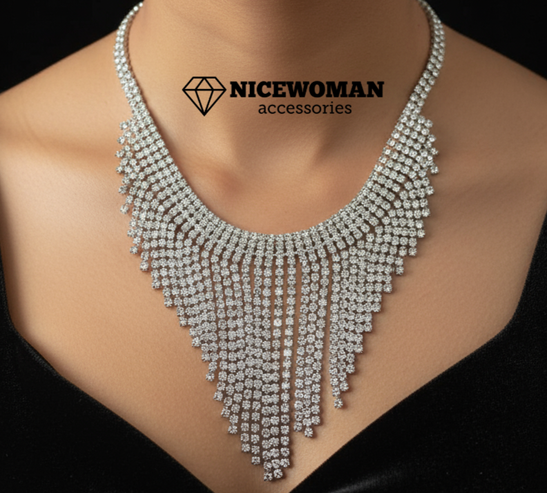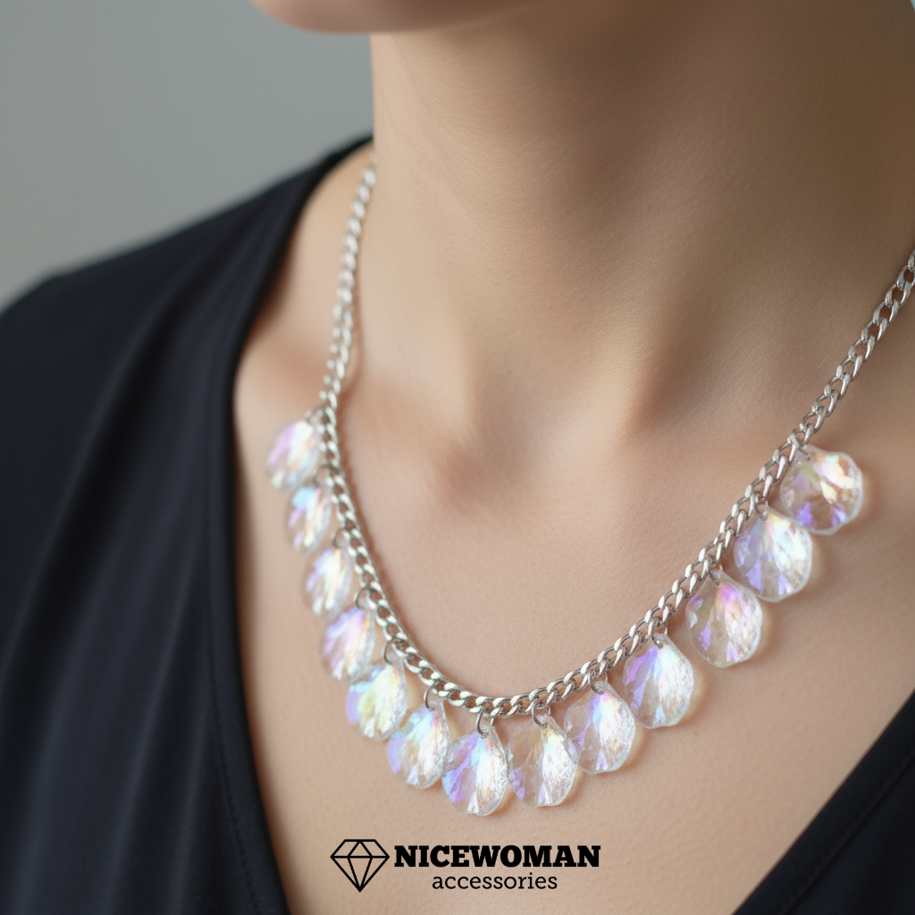 گردنبند زنانه آویزدار فول نگین سفید برند اروپایی Iam ضدحساسیت