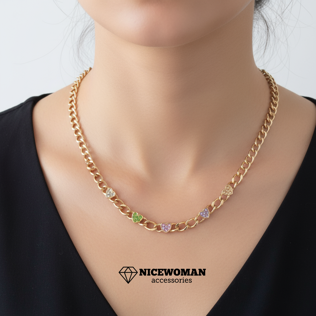 گردنبند زنانه طلایی کارتیر قلب و نگین رنگی برند اروپایی six ضدحساسیت