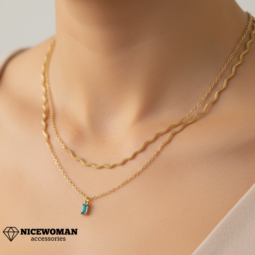 گردنبند زنانه طلایی دوردیف زنجیر نگین دار برند اروپایی Iam ضدحساسیت