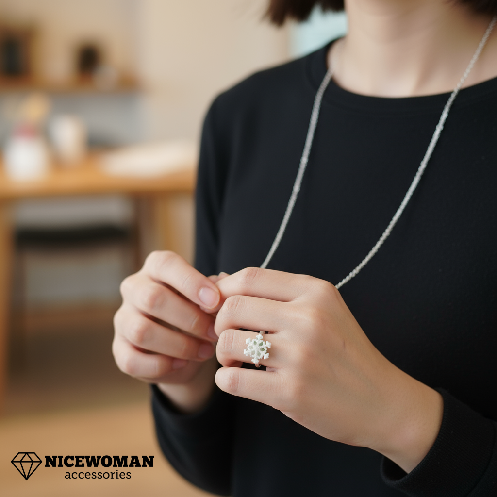 ست دخترانه کریسمس انگشتر دانه برفی و زنجیر ساده برند اروپایی Iam ضدحساسیت