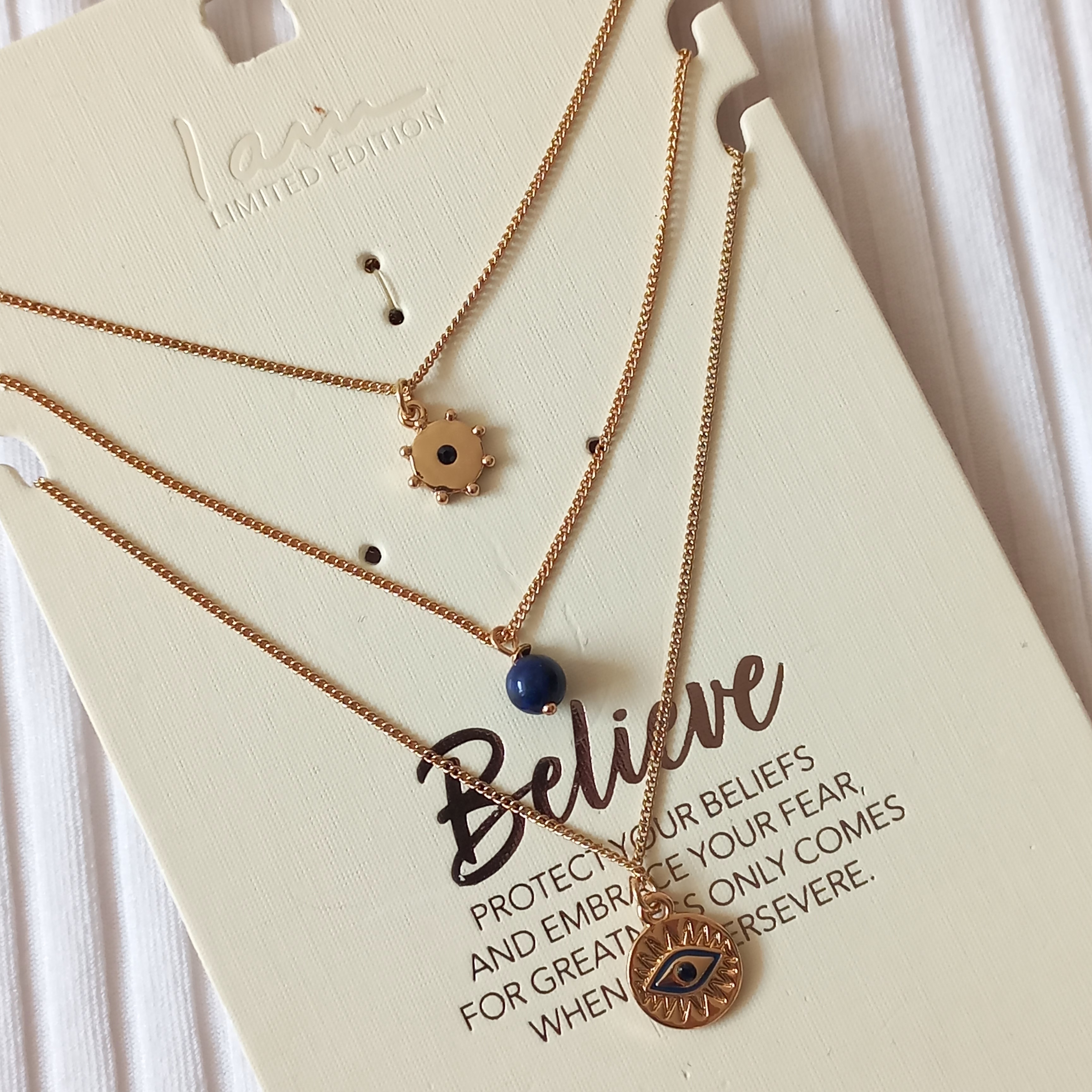 گردنبند زنانه سه ردیف آویز چشم سنگ آبی برند اروپایی Iam ضدحساسیت